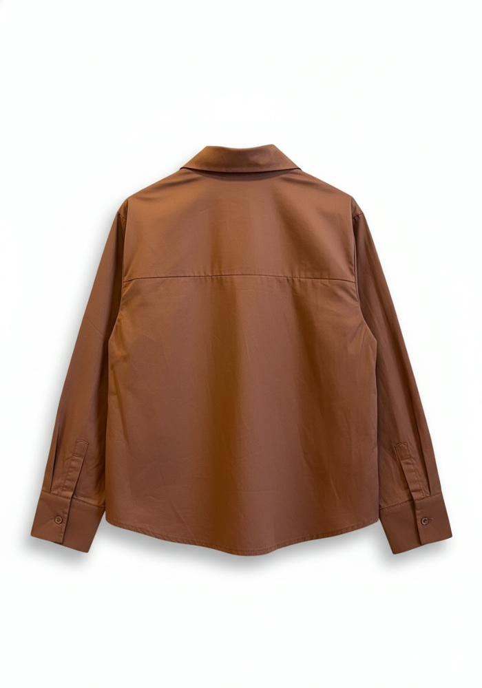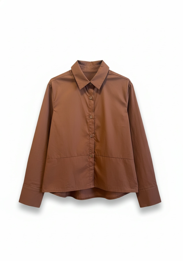 Blusa de popelín color tabaco, de corte recto y estilo minimalista.