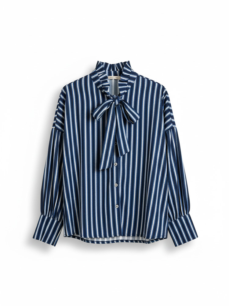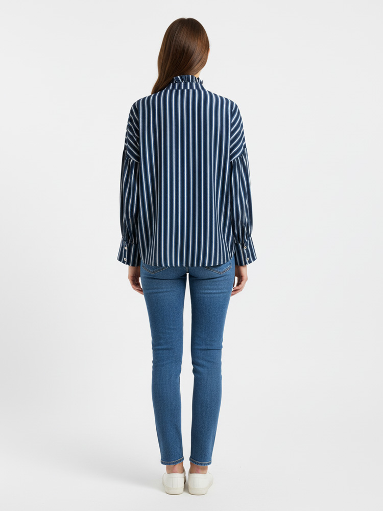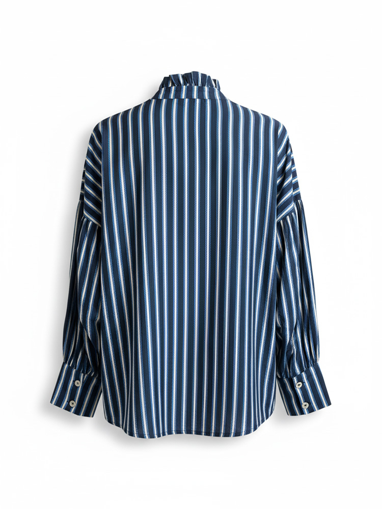 Camisa romántica de rayas en azul, con un aire femenino y fresco.
