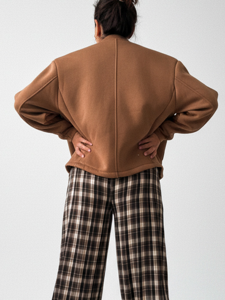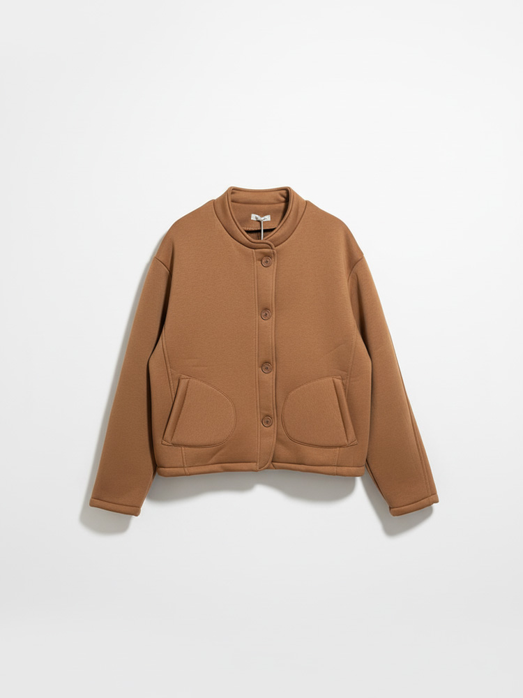 Chaqueta de corte relajado con aire de sobrecamisa, pensada para elevar incluso los looks más sencillos.