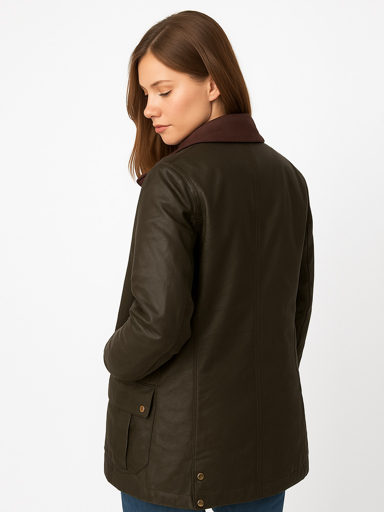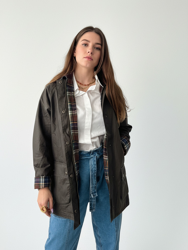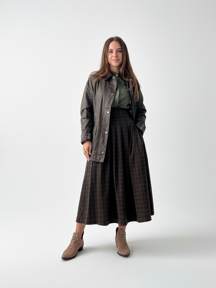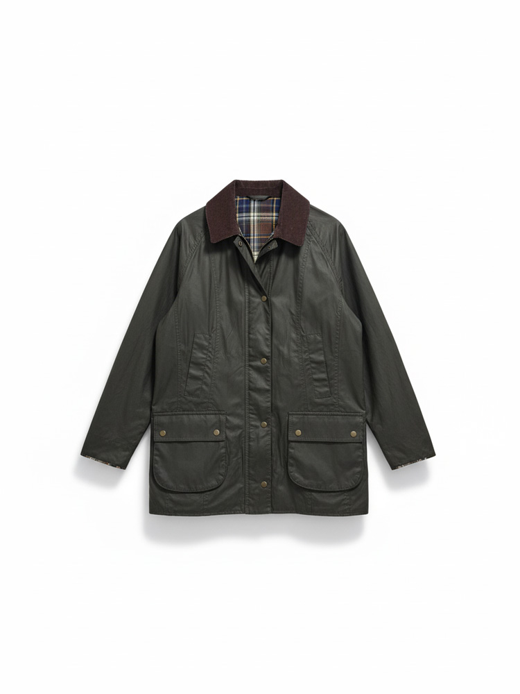 Chaqueta en verde con cuello de pana, un toque clásico reinventado y tan en tendencia este otoño-invierno.