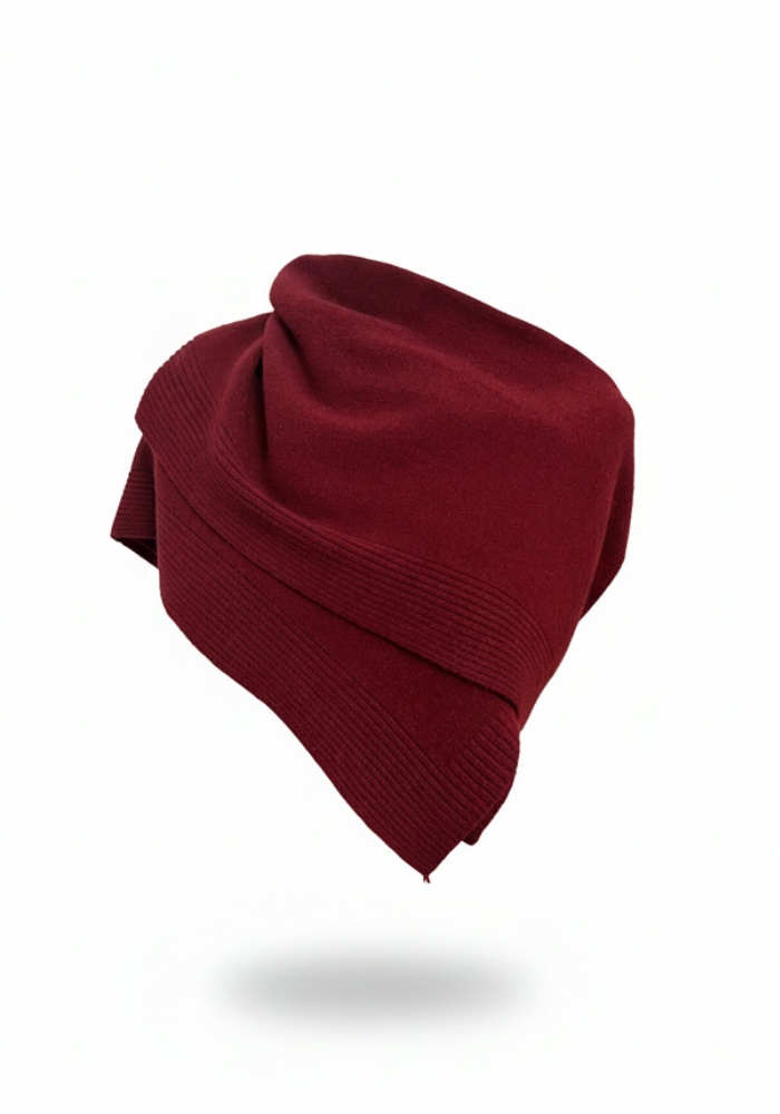 Bufanda ligera de punto en tono cereza, suave y envolvente, ideal para aportar calidez con elegancia.