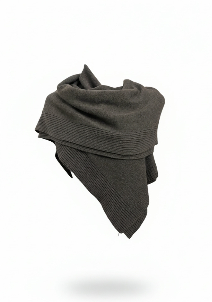Bufanda ligera de punto en tono gris, suave y envolvente, ideal para aportar calidez con elegancia.