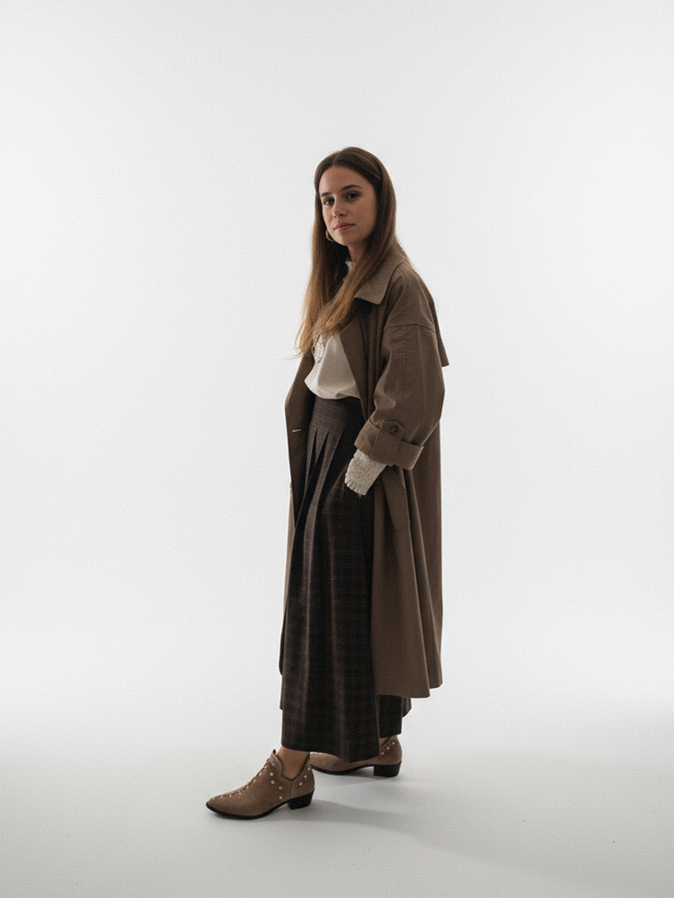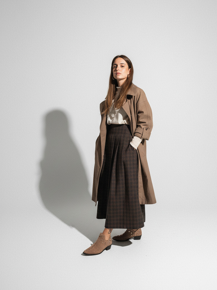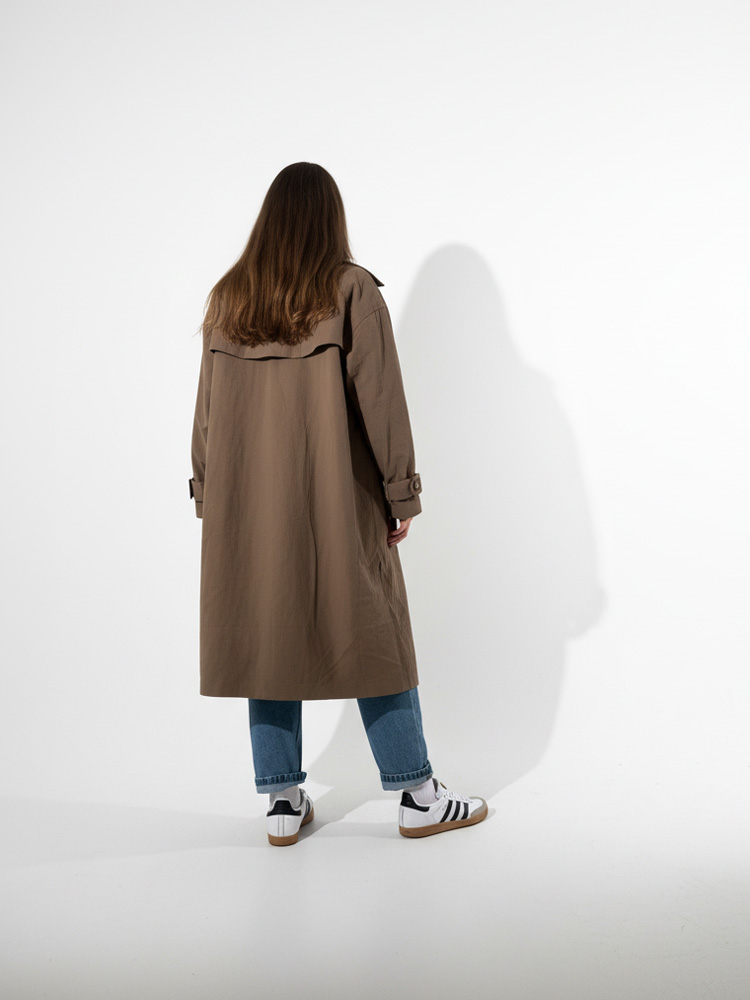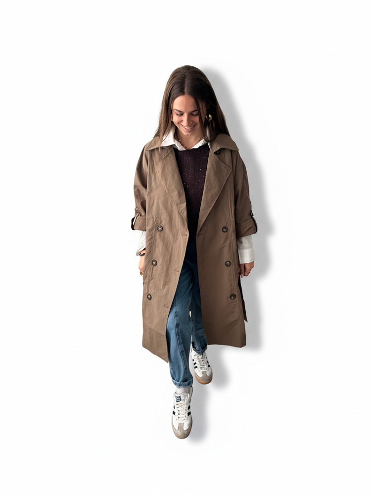 Gabardina fluida de entretiempo, con caída elegante y diseño versátil. Puedes recoger sus mangas para darle un toque más divertido.