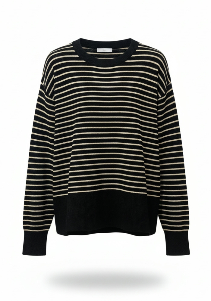 Jersey de punto oversize a rayas negras y doradas.