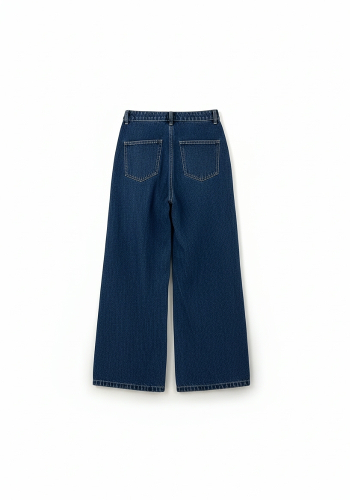Vaqueros de tiro alto con pinzas y pernera ancha y caída recta.